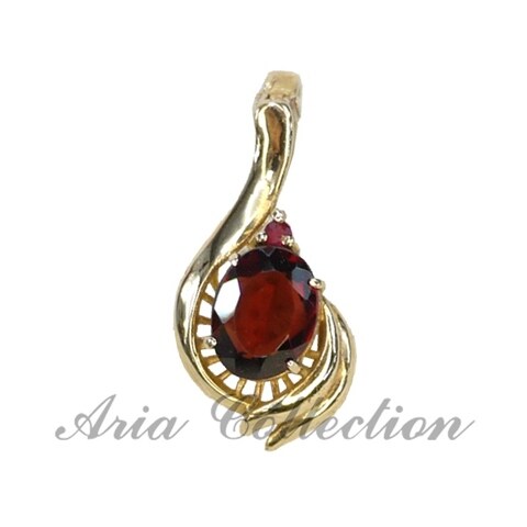 石榴石橢圓形刻面搭配紅寶石14k金可開式吊墜,可以掛在K金鍊, 也可以掛在珠鍊如珍珠項鍊.
