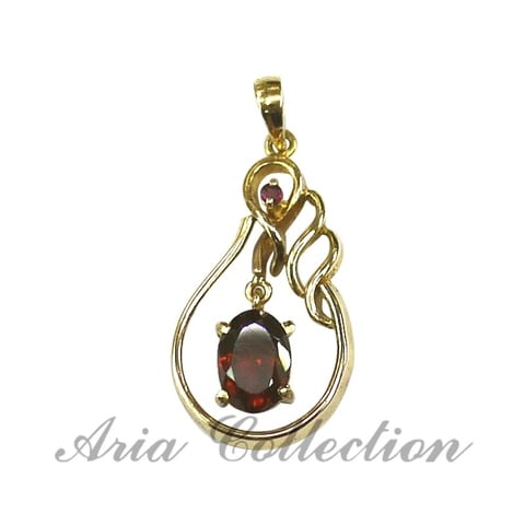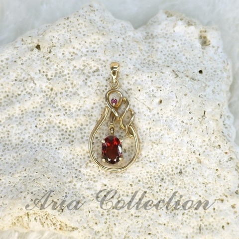 石榴石橢圓形刻面搭配紅寶石14k金吊墜